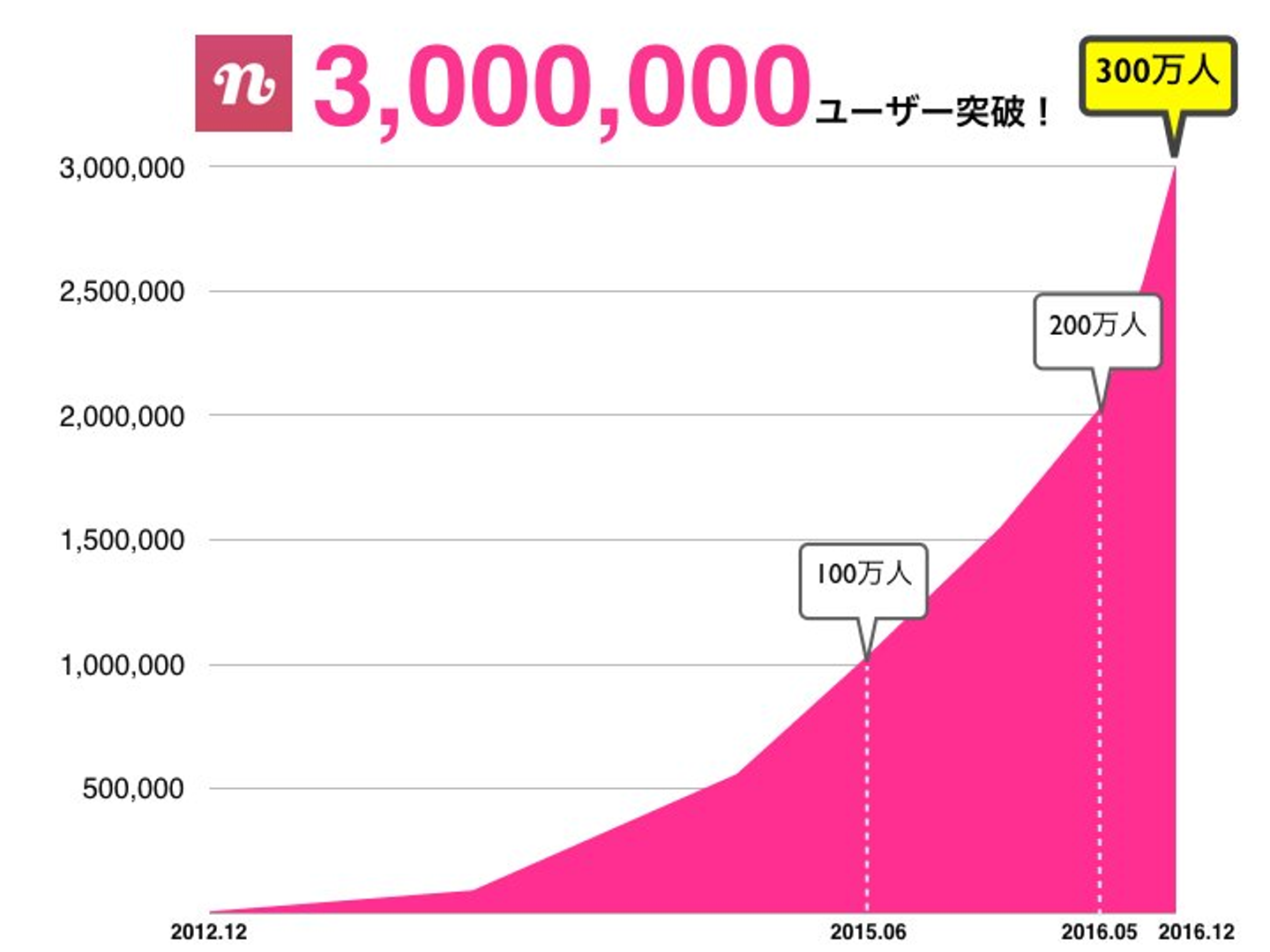 サービスとしては2012年8月にβ版を、同年11月に正式版をリリースしました(最初はiOSのみ)。リリース当初は全く鳴かず飛ばずで、かなり辛い時期が続いたんですが、2013年12月ごろから急に大きく伸びはじめ、現在では300万ユーザーを超え、その半数が10代の女性というようなサービスとなっています。