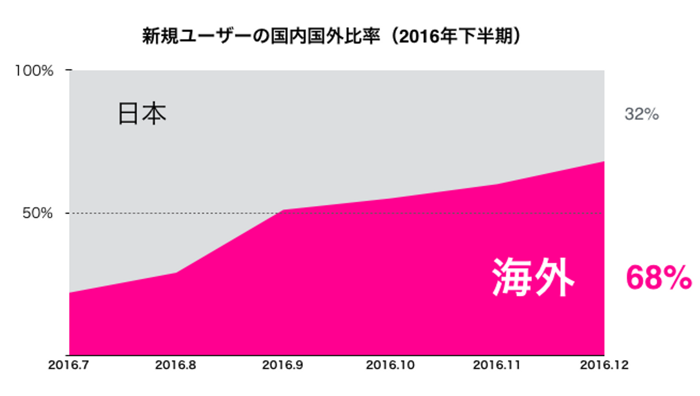 ぼくたちはこの新規獲得比率をとても重要視しています。それは、もともとnanaをグローバル・サービスにすることを最優先の目標として置いているからです。