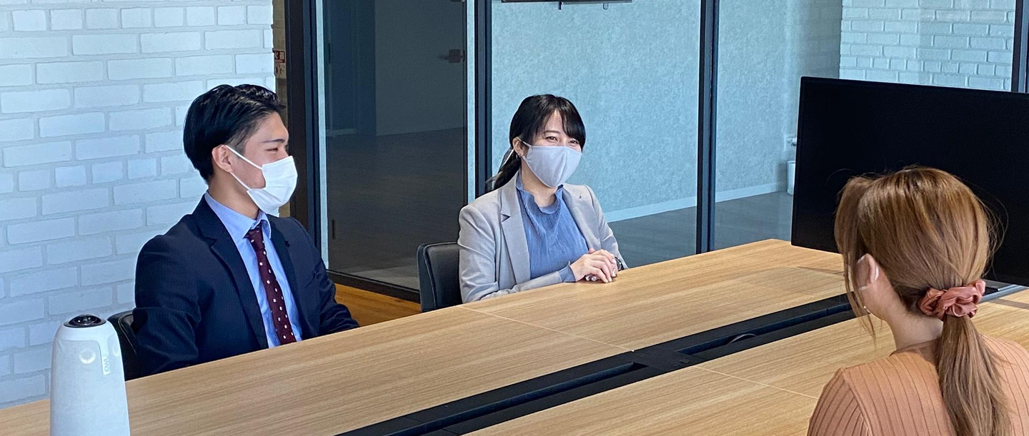 C.Y.さん : 勤務開始前はたった1人のデザイナーとしての勤務で孤独になることも覚悟していましたが、 6人も同期がいる上に部署関係なく先輩が助けてくれています。当初は熊本と千葉の拠点で業務を進行するイメージが掴めていませんでしたが、 オンラインですぐに会話することが出来ていて物理的な距離は感じずに近くにいる感覚で仕事ができています。