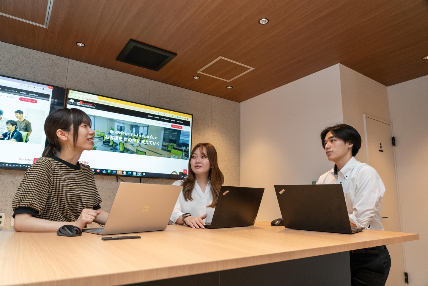 モニター完備、会議室は3種類、座席自由なので、職種関係なくコミュニケーションを取れたり、目的に合わせた柔軟な働き方を体現しております。