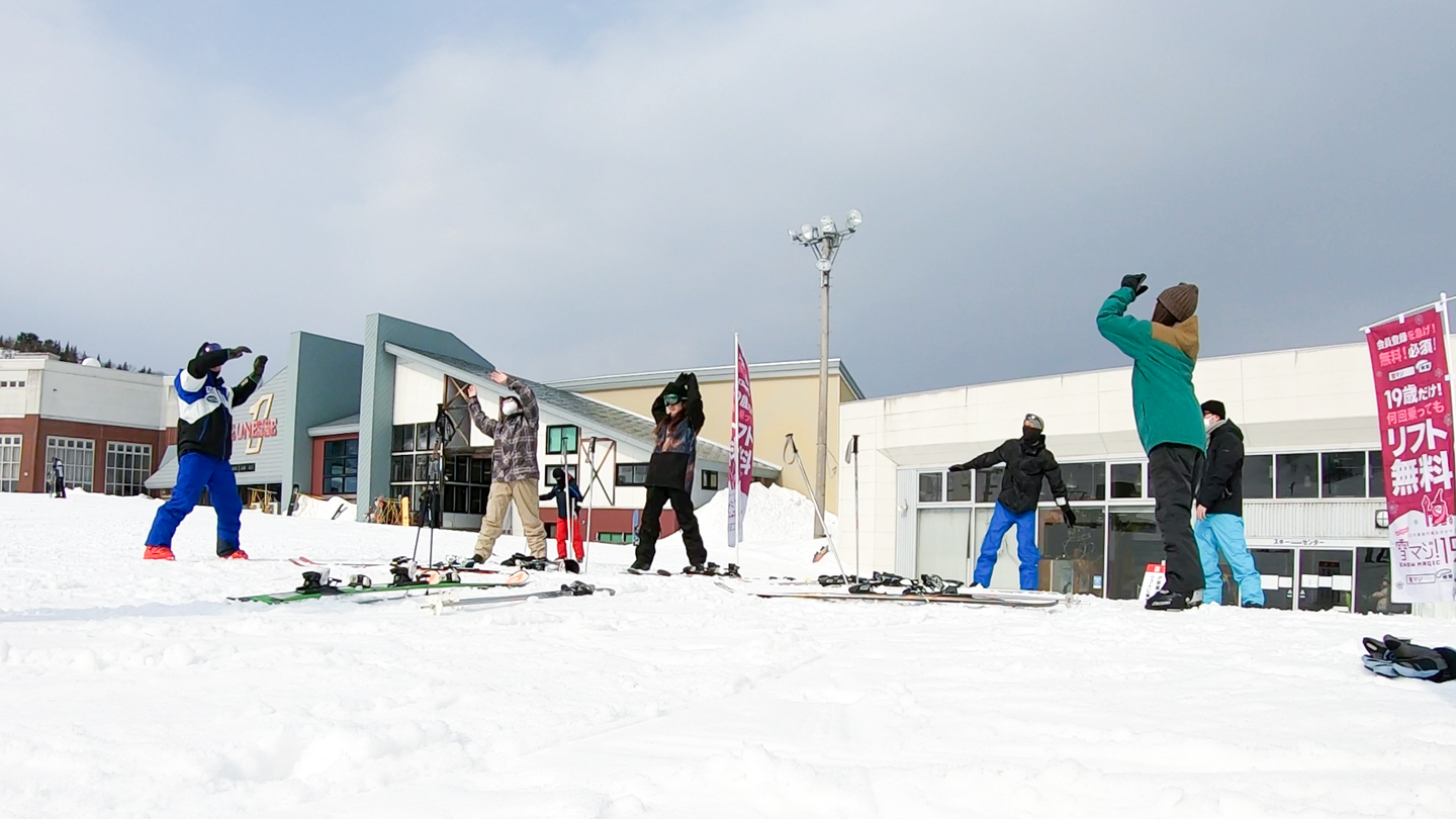午前はスキー講師の方の指導の元、スキーの器具の付け方や、滑り方を1から丁寧に教えて頂きました。