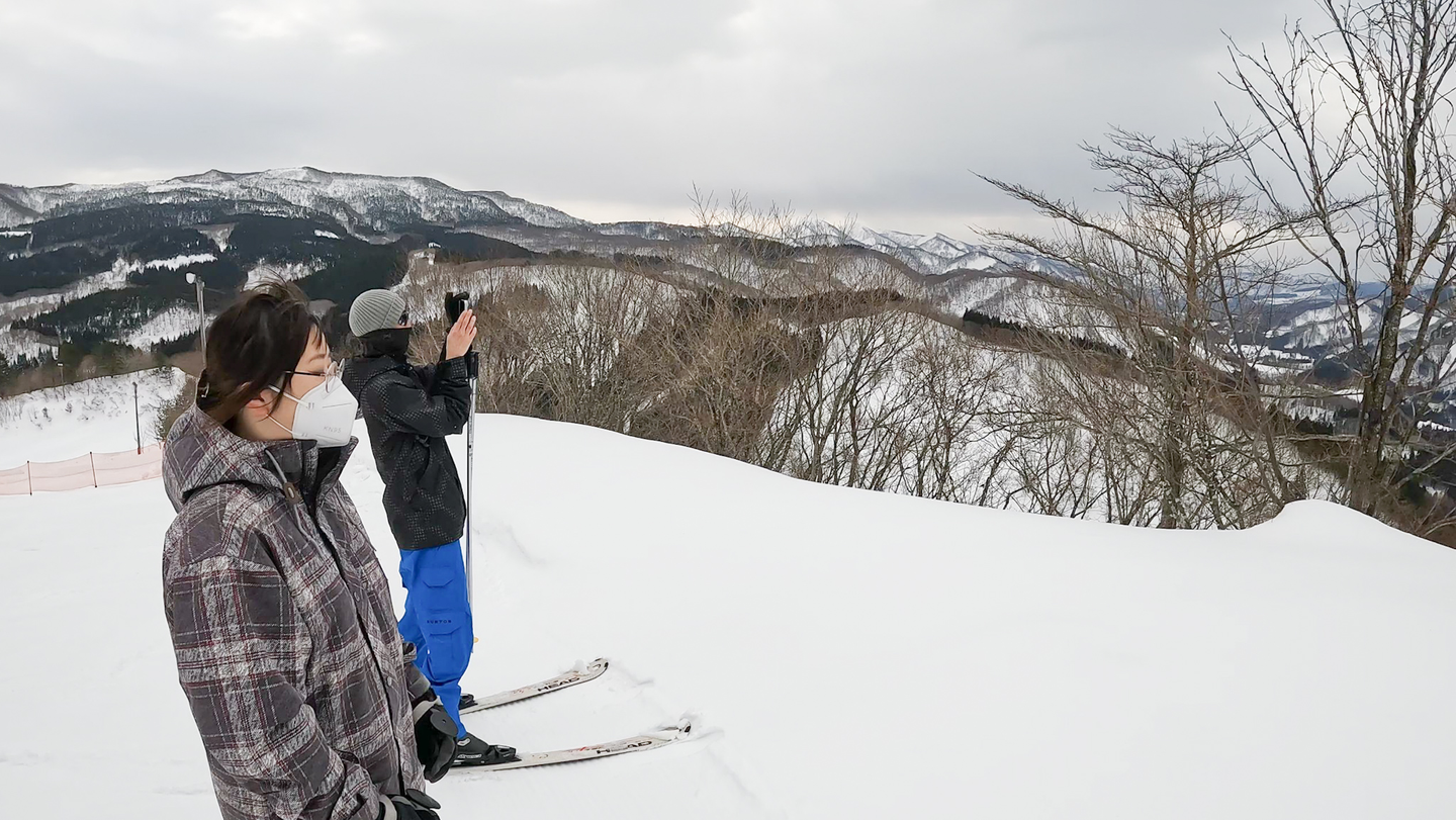 東成瀬村に来た時に見えるシンボル的なスキー場で、山頂からの景色は息をのむ程でした。永遠と続くように連なる山々の中に静かに存在する村。