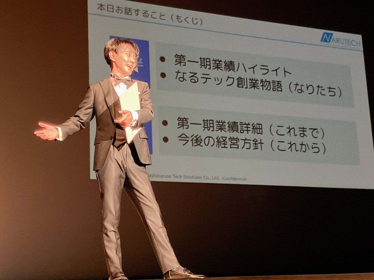 なるテックの成り立ちから今後のビジョンまでをスライドを使いながら分かりやすく発表していました。