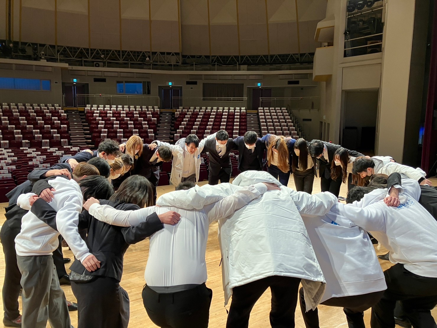 なるテックメンバー全員で円陣を組み、気合を入れてから準備スタート。