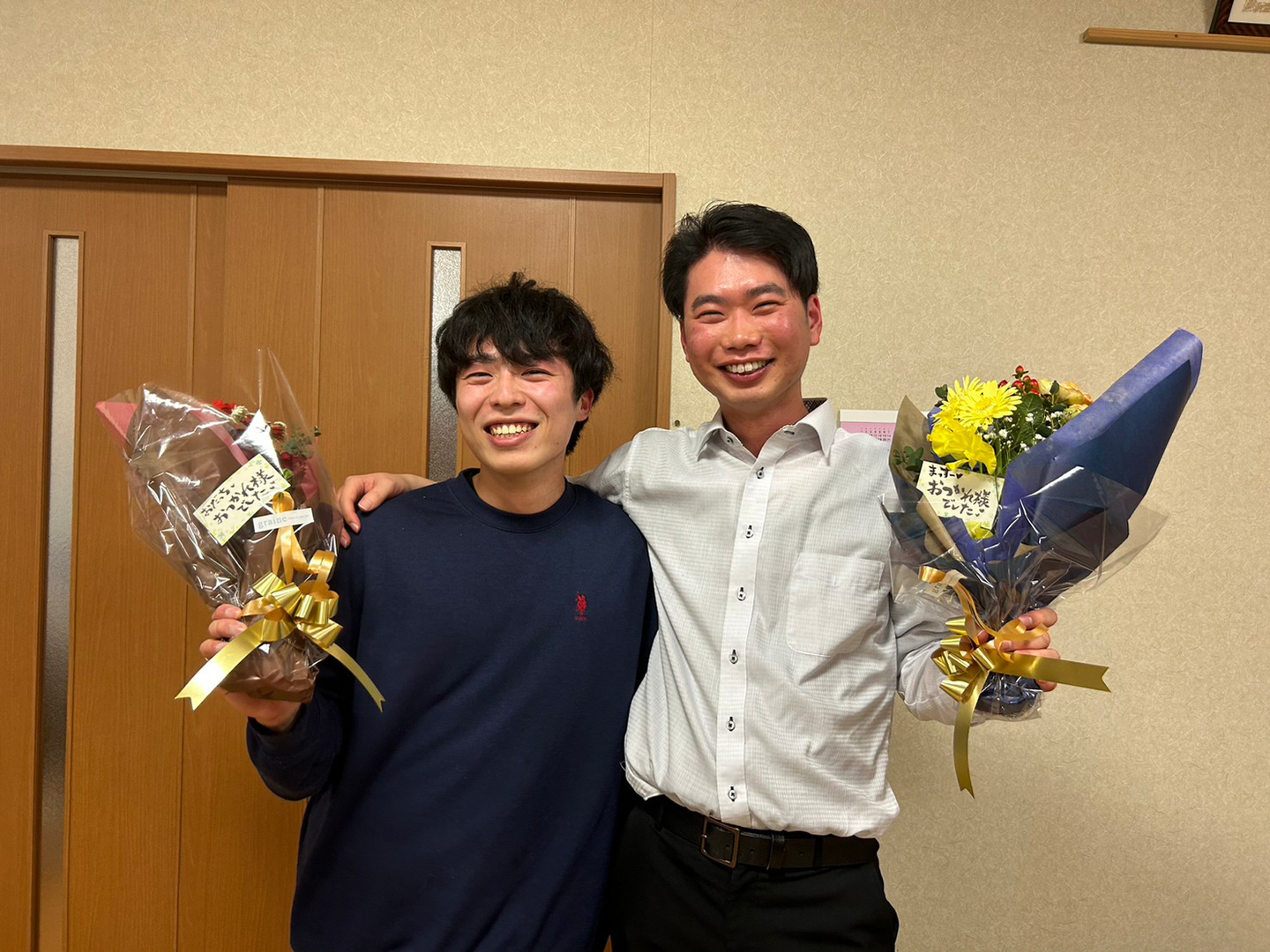 成果報告会が終了した後には、プロデューサーのおだっち(塩田)とサブプロデューサーのまっすー(増山)に、花束が送られました。