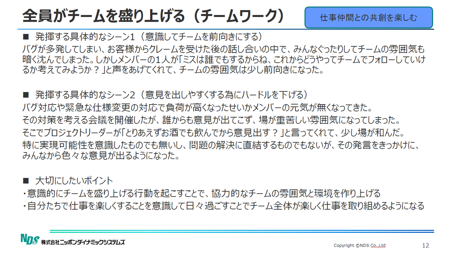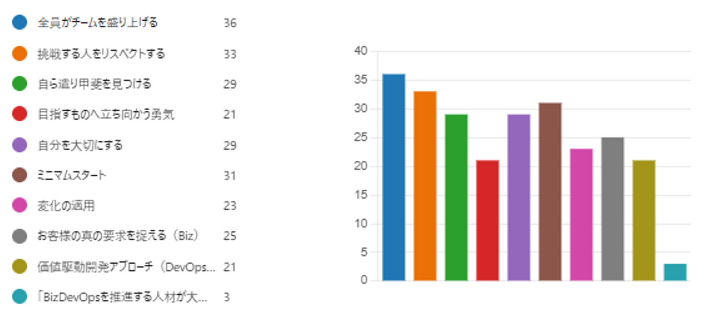 「全員がチームを盛り上げる」に共感した人が最も多い結果に。