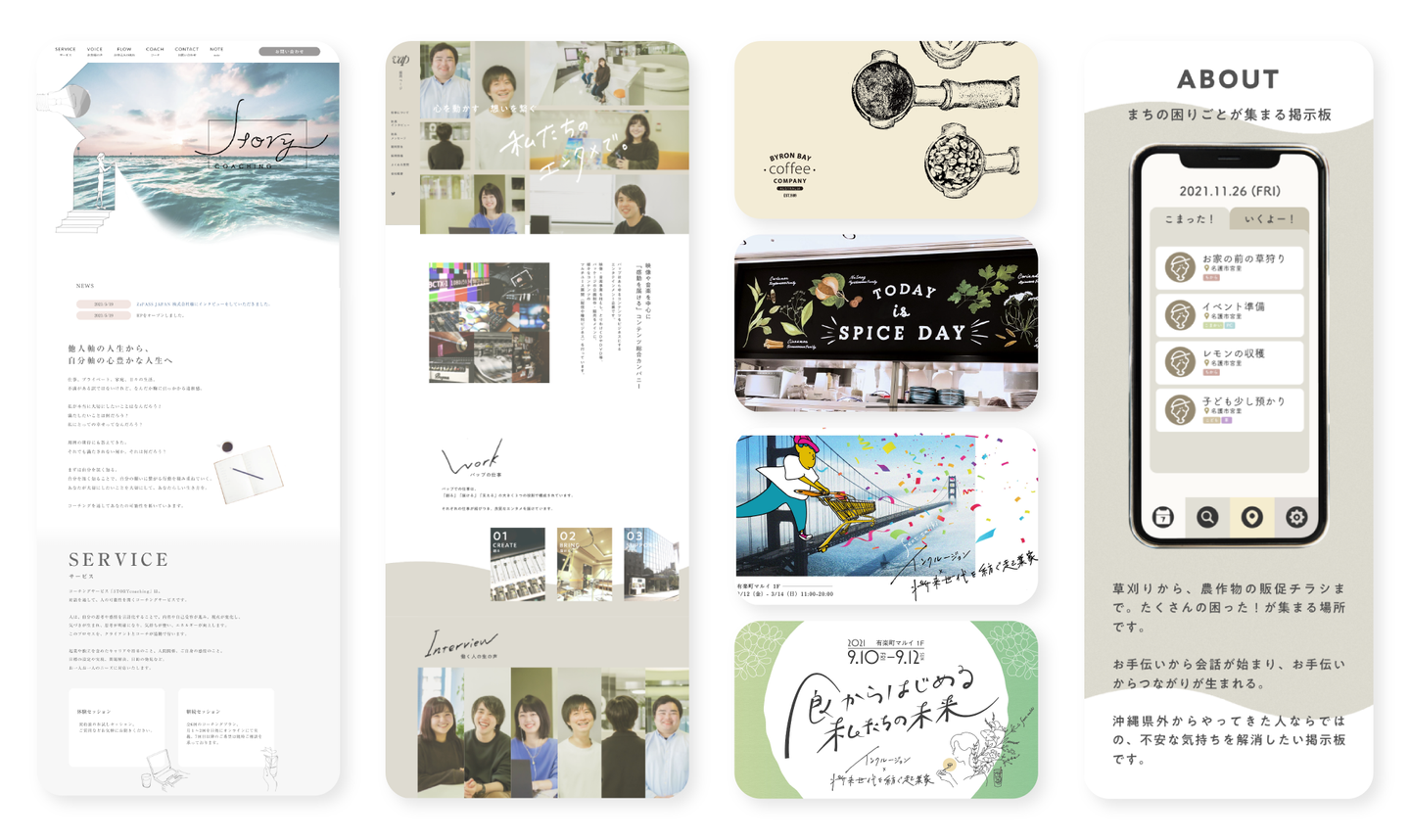 過去作ってきた作品を見せてもらうことはできますか?はい!他にたくさんあるので一部ですが、ロゴからWEBサイトの作りこみまで振り返ると色々な仕事をさせていただいたなあと思います。
