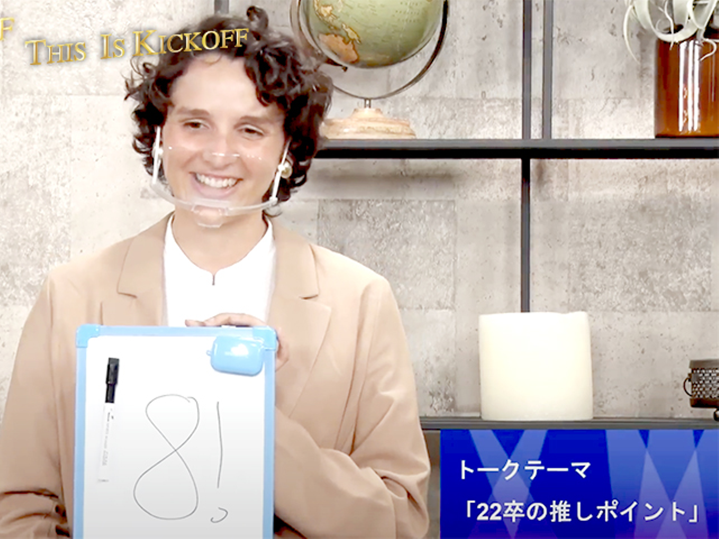 22年度新卒が話せる言語数の合計である「8」を書いた新卒のアンジー(まさかの縦書きには思わず突っ込みそうになりました。)