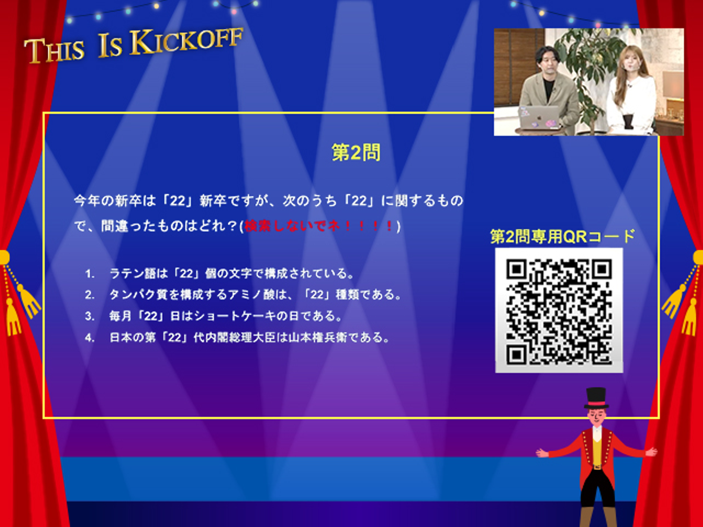 キックオフで出題されたクイズの一つ。皆さんは答えがわかりますでしょうか?