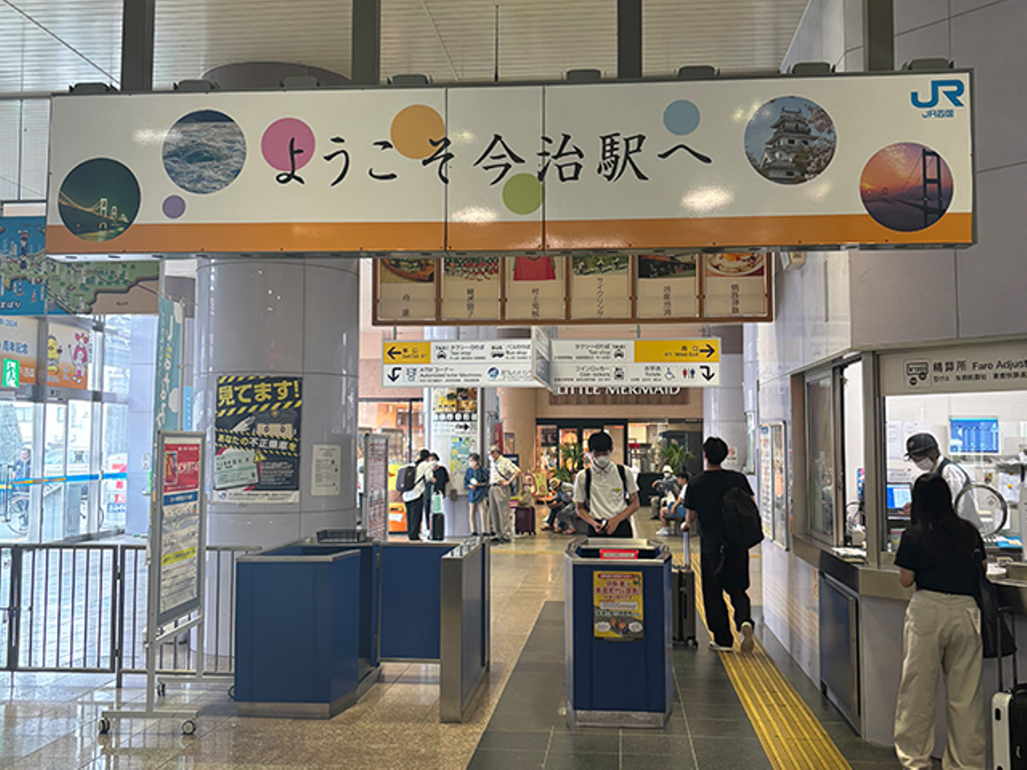 ▲今治駅に到着。これから今治の地の魅力や課題を知り、今治のために発表できることにワクワクしていました!