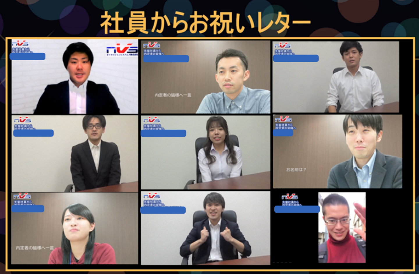 社員一人ひとりの個性が伝わるメッセージビデオで 内定者の皆さんの緊張も和らいだ印象でした♪