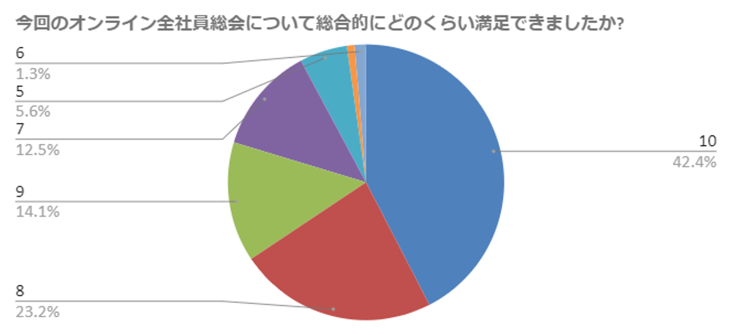 結果、参加した社員の約80%が「満足した(8,9.10)」と回答。