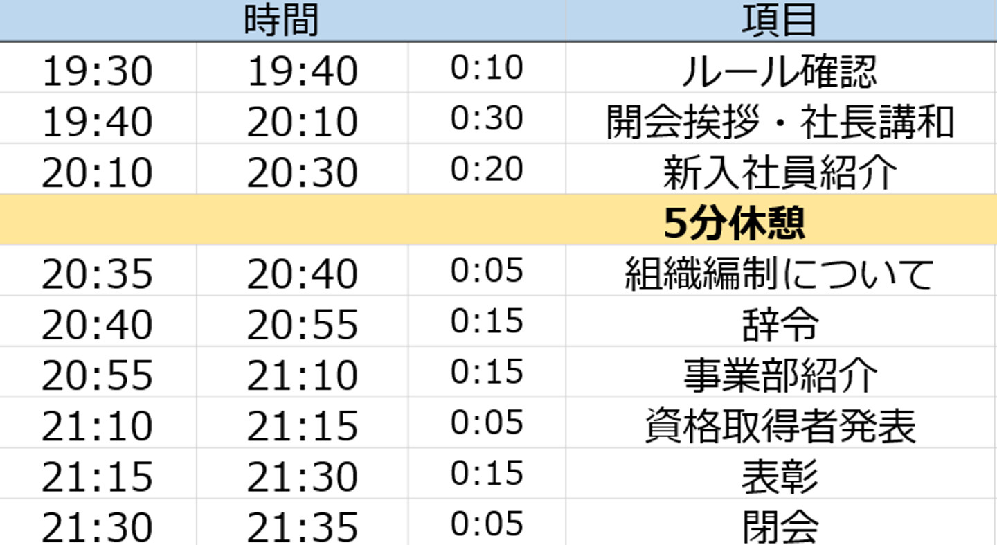 <全社員総会のタイムスケジュール>