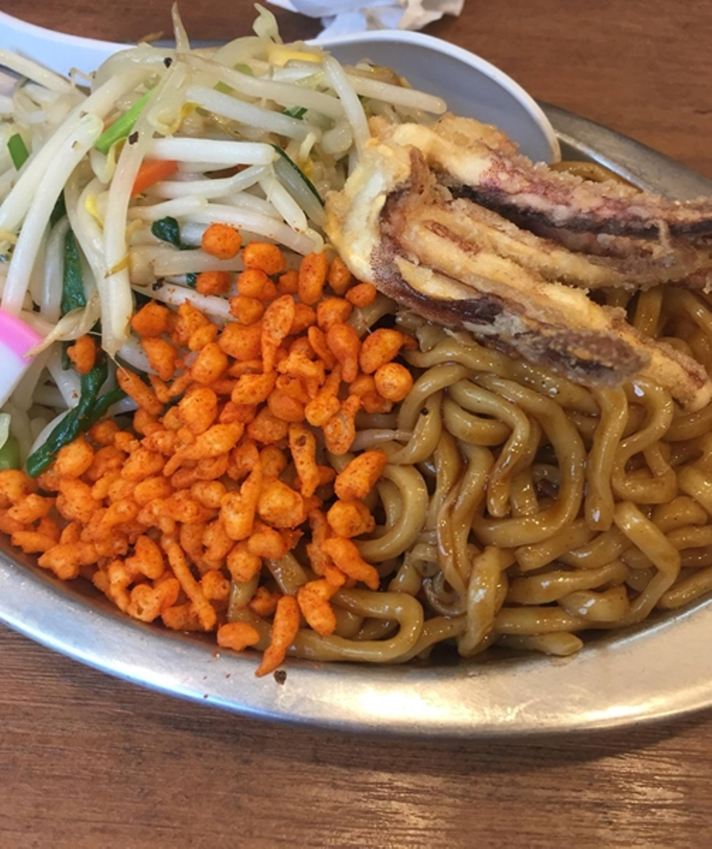 ランチは各自のタイミングで取りに行きます。都心に比べたらお店は多くはありませんが、我々のツボをとらえたボリューミーなザ・定食屋が多数存在します。個人経営の居酒屋のランチタイムとか最高ですね。そしてランチ開拓者北畠が感動して会社のSlackに飯テロを巻き起こした焼きそばがコレ。