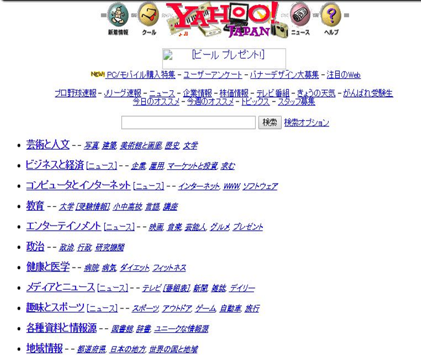 こちらは1997年1月のYahoo!JAPANのTOPページです。