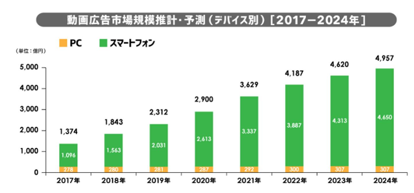 そして動画広告市場は、2024年に約5,000億円に達すると予測されております。