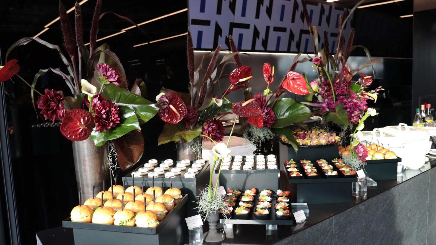 移転当日は、カフェスペースとオープンスペースを活用し、社内向けのささやかな移転パーティを実施しました。食事と装飾はジュリークさんに依頼をし、新オフィスの雰囲気にぴったりなお花と見た目にも美味しい食事をご用意いただきました。