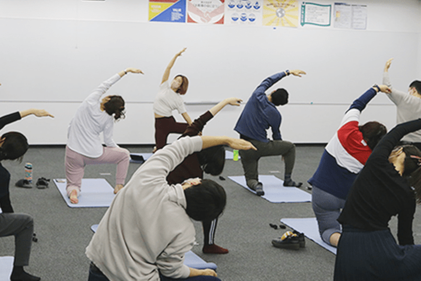 デスクワークによる肩こりや運動不足を感じている社員に向けて初心者でも楽しめるヨガイベントを不定期で開催しています。