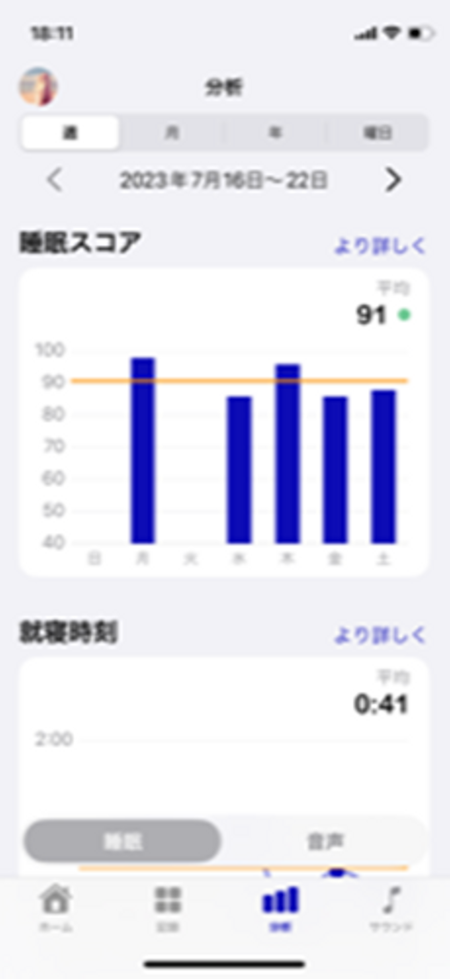 ちなみに下のスクショが私の平均睡眠スコア。眠る前のストレッチを習慣にしている効果なのか、91点と高得点でした。順位も3位という好結果になり、嬉しかったです。