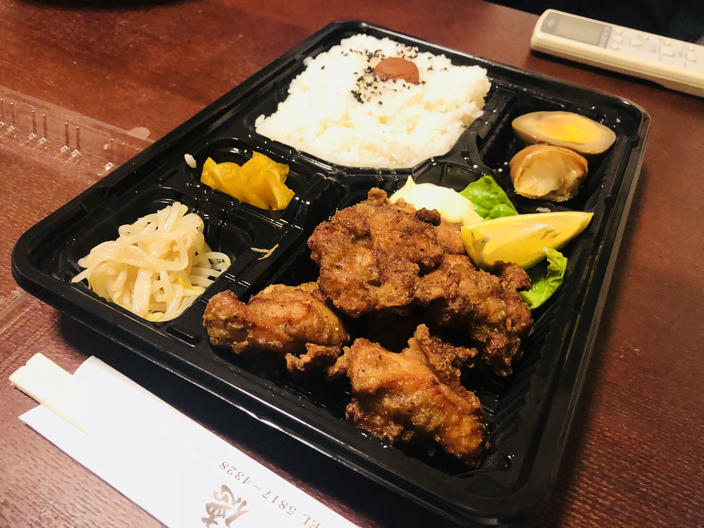 唐揚げが5個も入って、おかずも色々ついているというお得さ。
