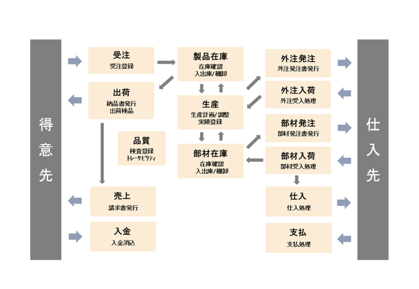 そもそも製造業の現場の業務フローは複雑です。あらゆる業務フローが一連の流れで行われ、様々な部署が関わって日々ものづくりをしています。