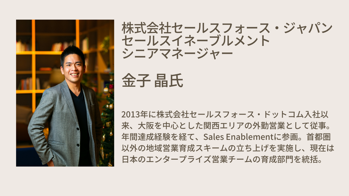 セールスフォース・ジャパン セールスイネーブルメント シニアマネージャー金子氏をゲストにお招きし、「営業成果を最大化するセールスイネーブルメントとは?」について語っていただきます!