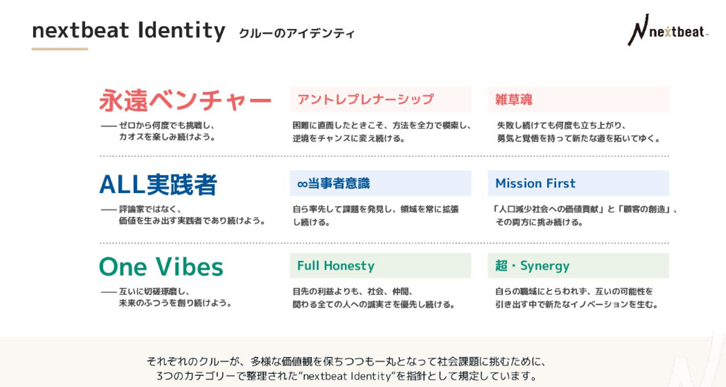 ーー「nextbeat identity(行動指針)」で最も重視しているものは?