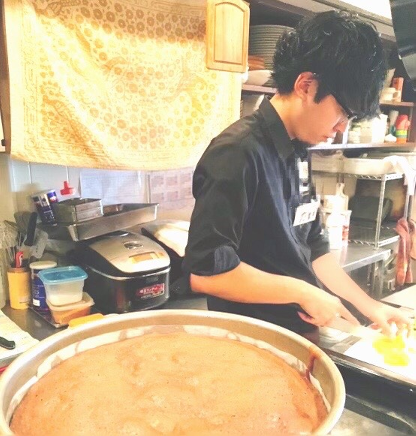 店長時代の僕です!手前は僕が焼いた巨大ガトーショコラです(笑)