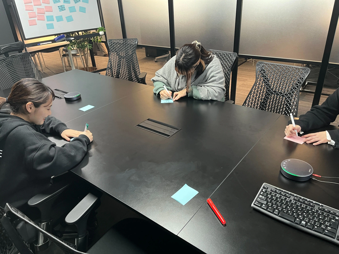 とりあえず、会議室に集まって付箋にアイディアを書きまくります。
