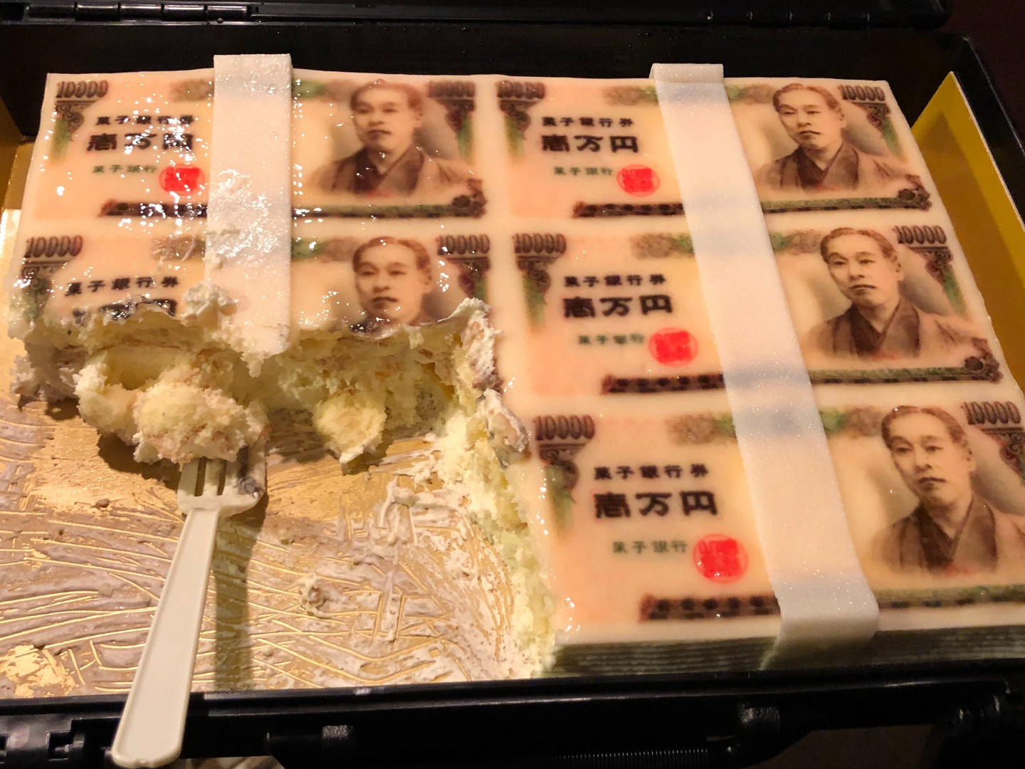 残念。諭吉の正体は、クリームたっぷりのケーキでした!