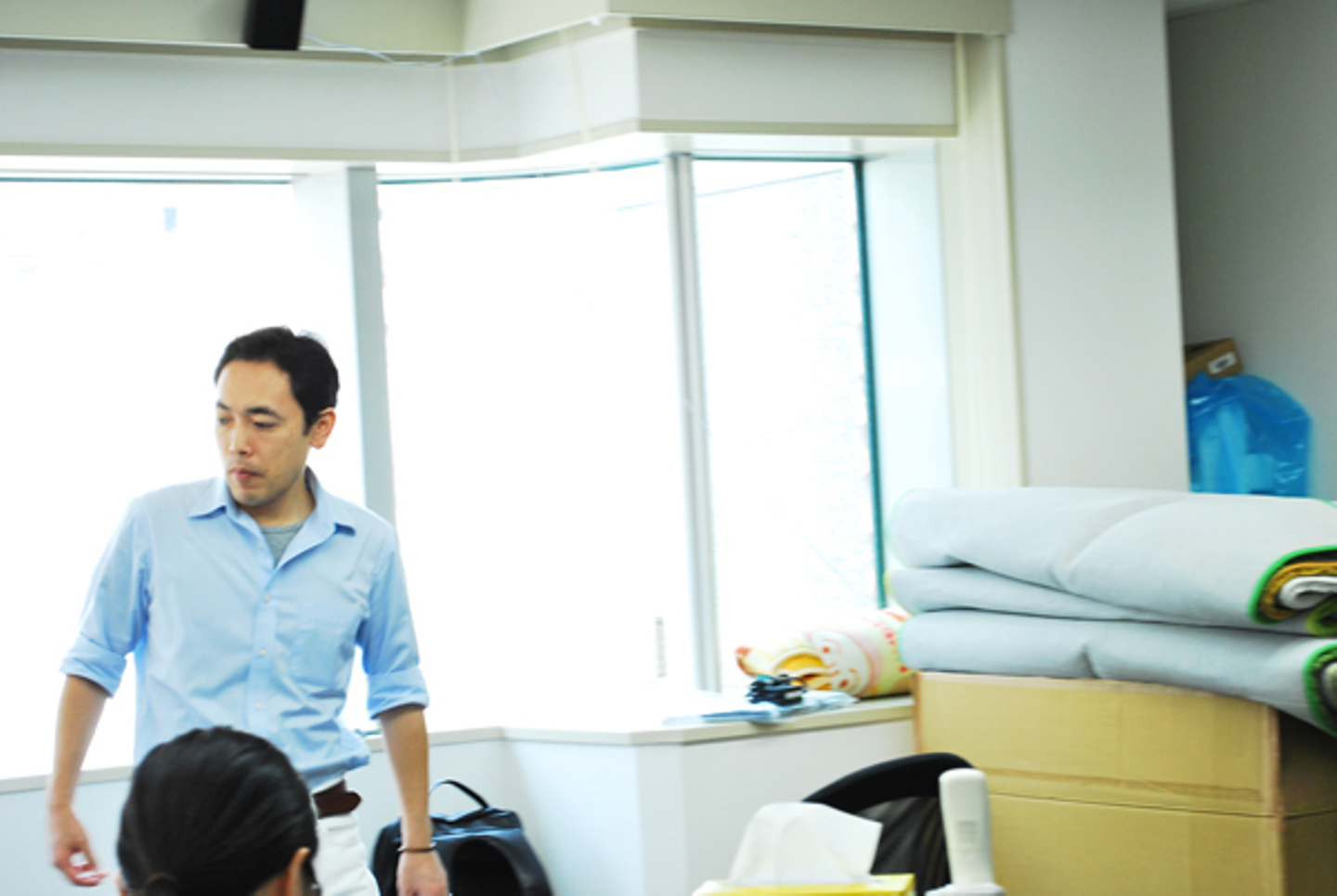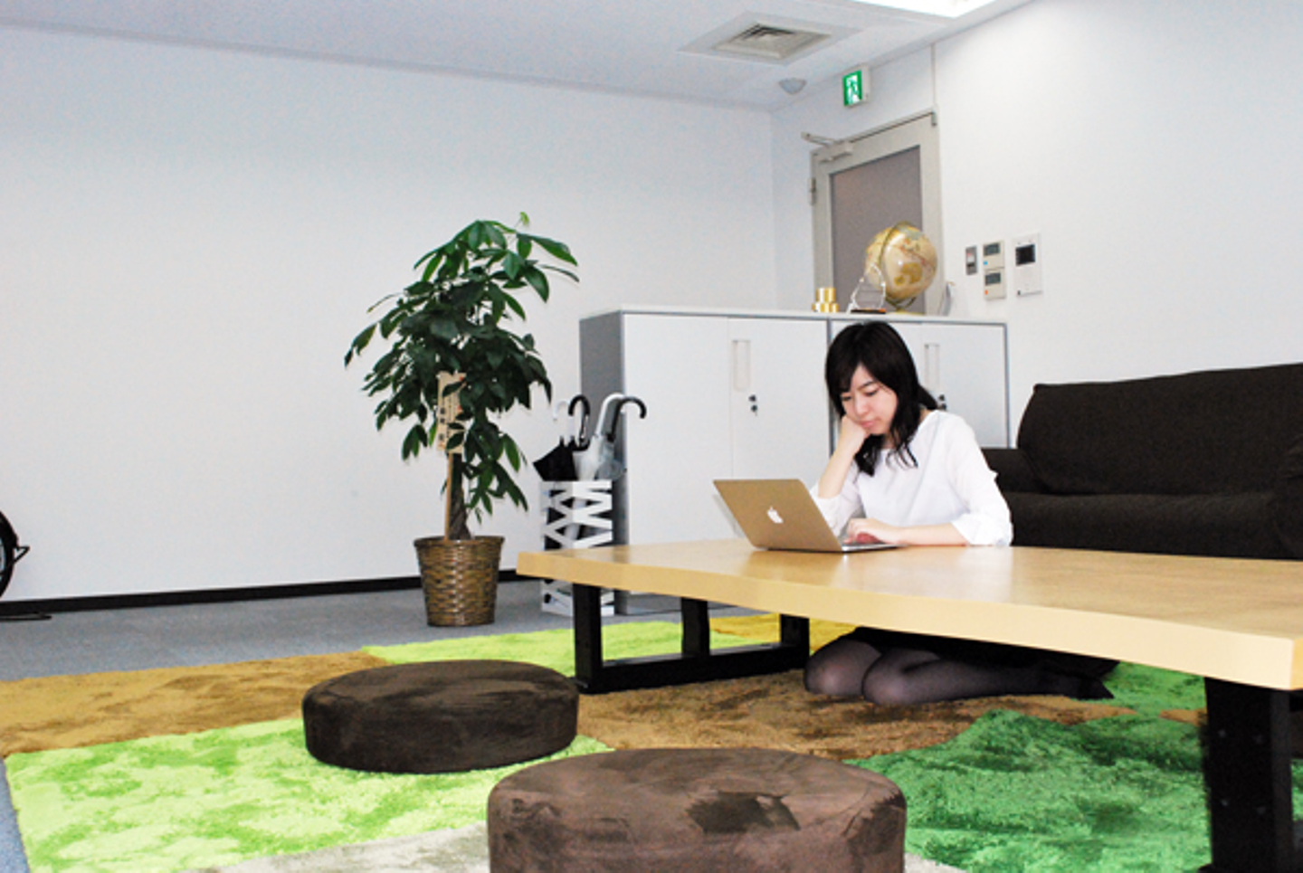 夏は畳が敷いてありますが、冬はマットに変わります(笑)。机で作業することもできますが、インターン生はここで作業する人が多いです。