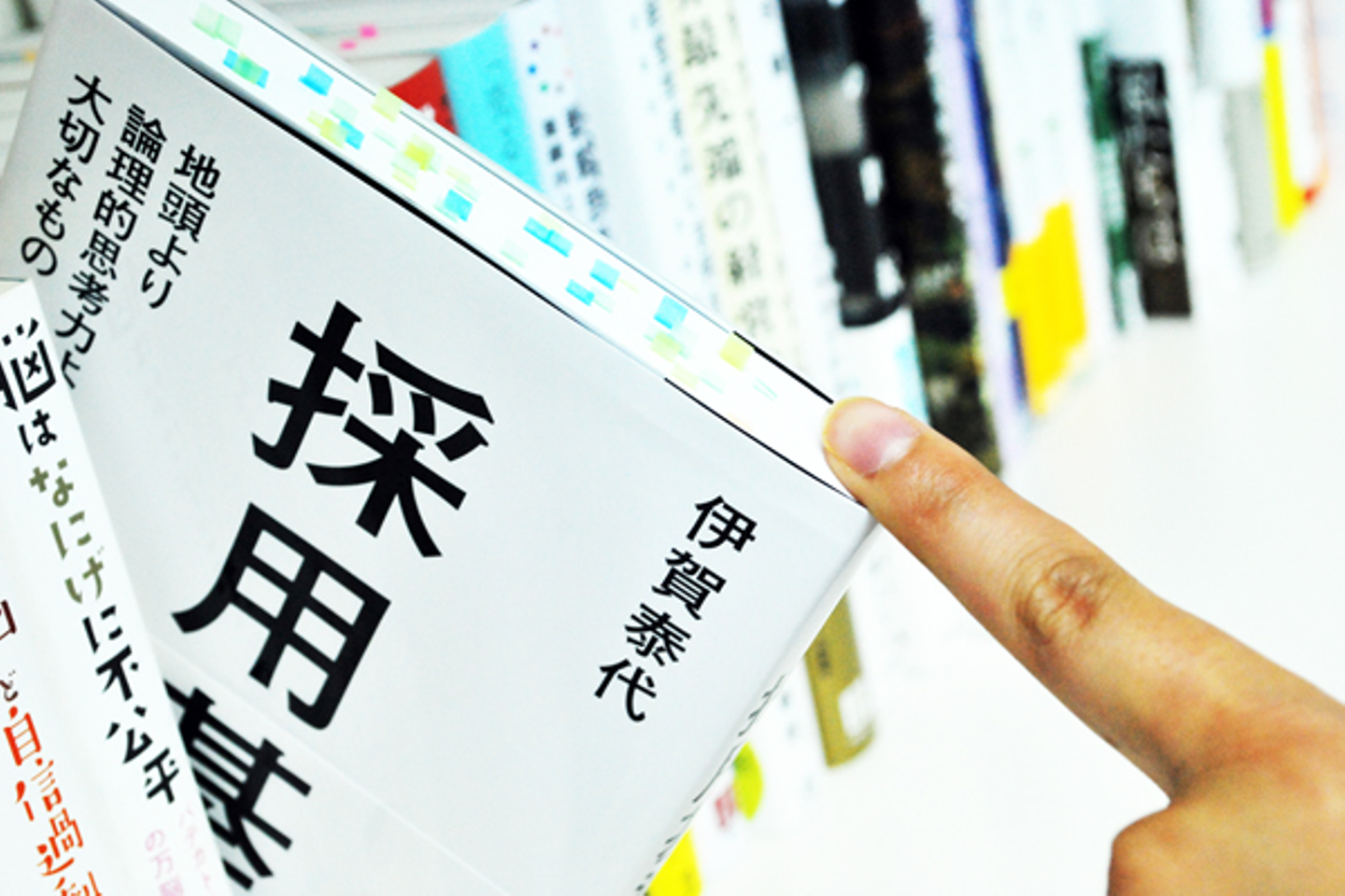 次はオフィスにある本棚の紹介。ここにある本はだれでも借りることができます。IT関係の本から、採用関係の本など様々な本がおいてあります。