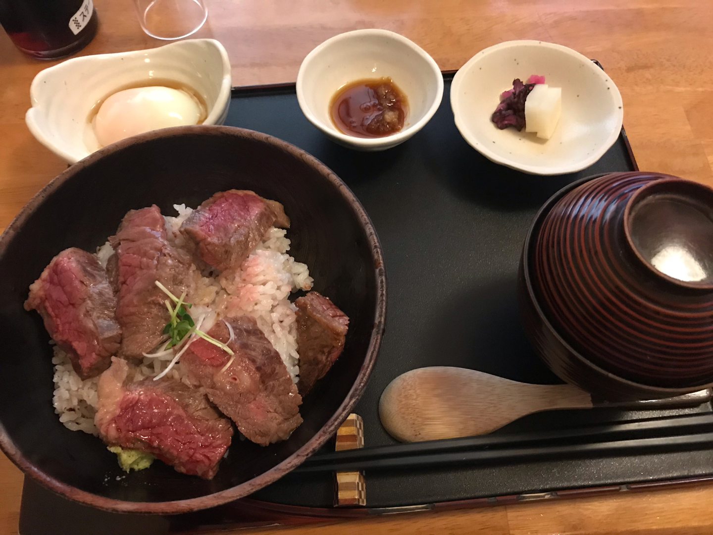 まずは、インターンのTさんオススメのステーキ丼を食べました!