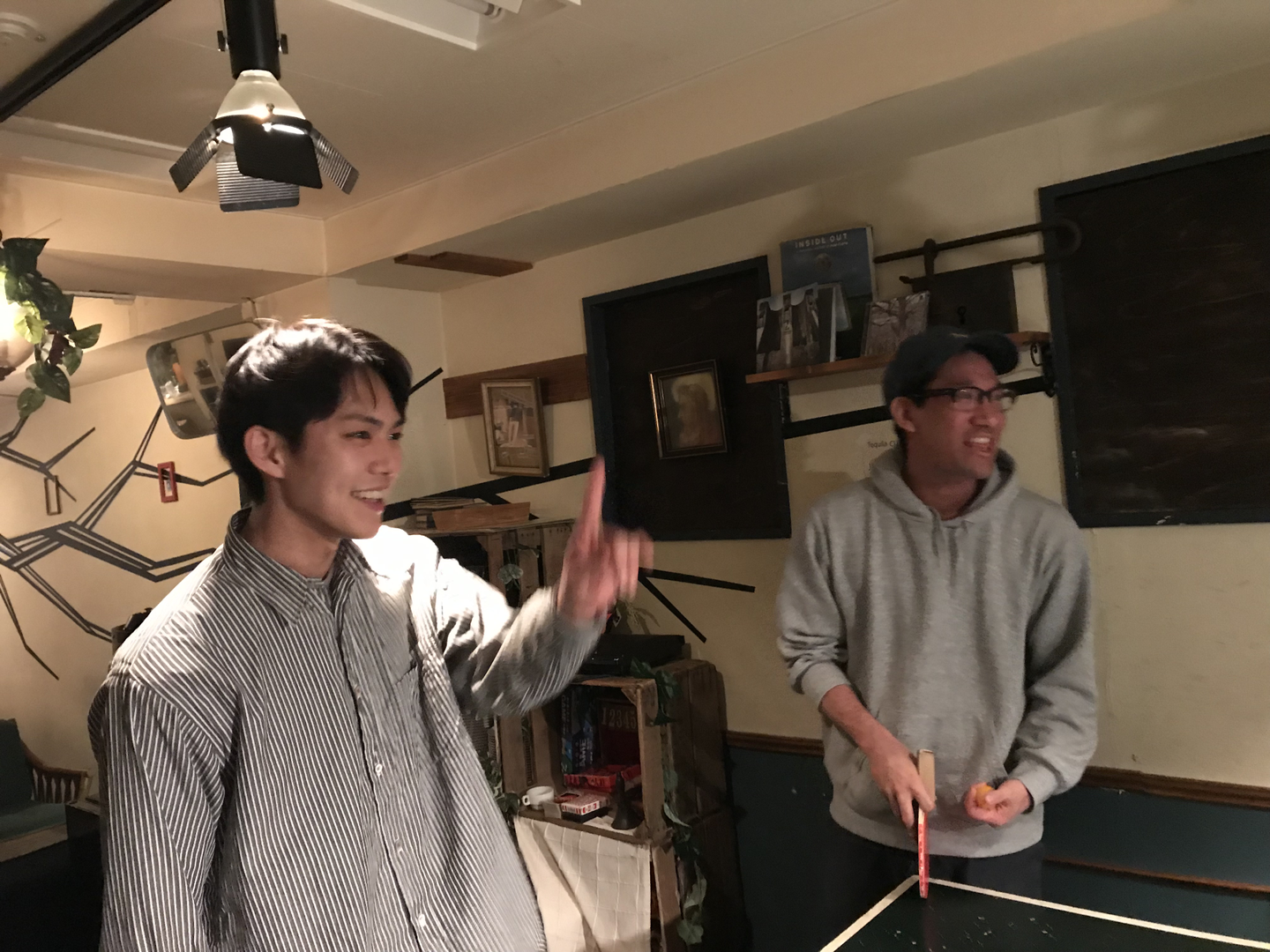 インターン生と社員さん数名で卓球バーへ行きました。卓球でもチームワークが光っていました!