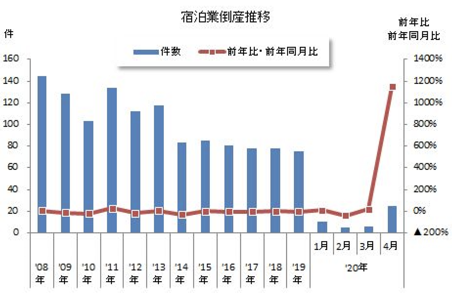 (出典: 東京商工リサーチ【新型コロナウイルス関連】2020年4月「宿泊業」倒産状況)