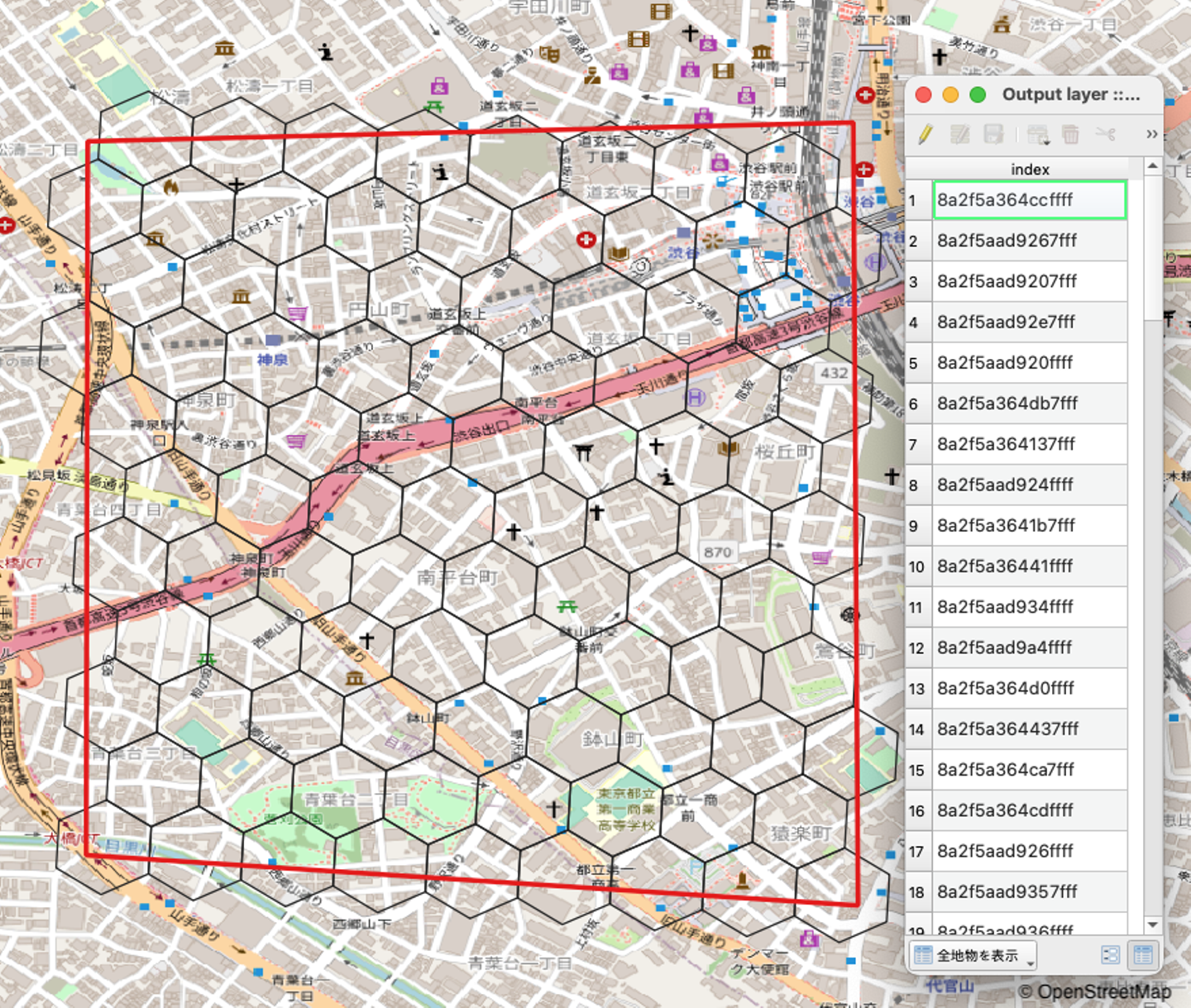 結果はこんな感じで、今回の目的であるH3ヘキサゴンメッシュが無事に作成できました!