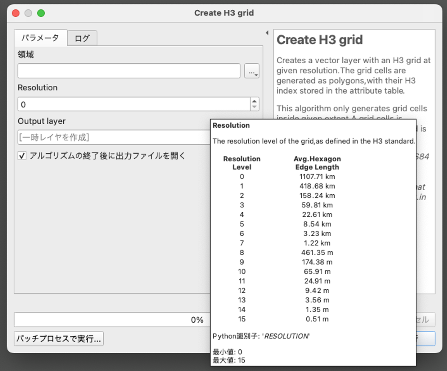 ズームレベルのようなもので、数字が上がるほど六角形の一辺の距離が短い(=解像度が高い)メッシュが作成できます。