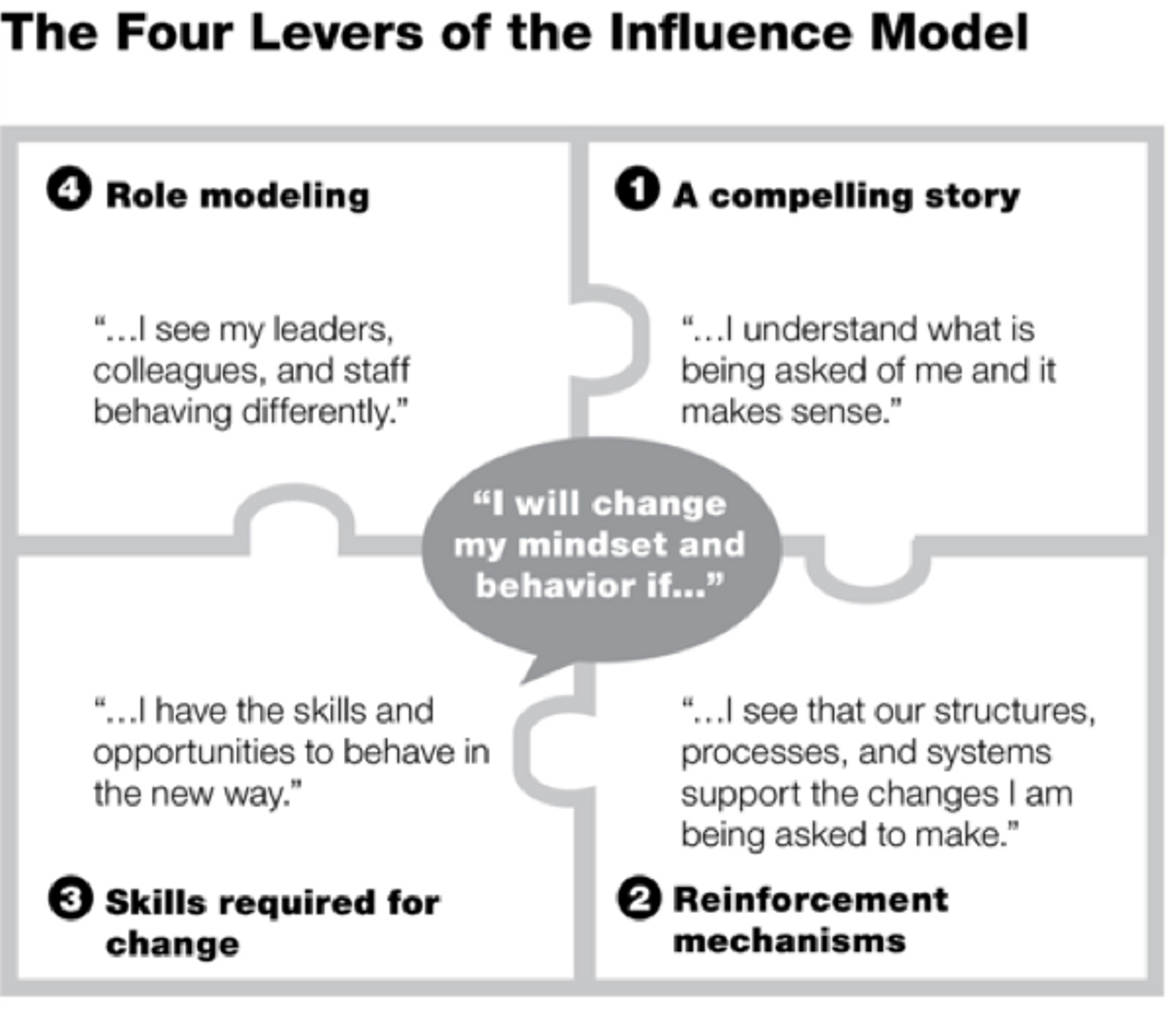 これはMckinseyが組織変革を行う際に用いるフレームワークの一種で、個人の行動変容を促す上で、4つの領域に分けて施策を検討・実施する必要があるという考え方です。