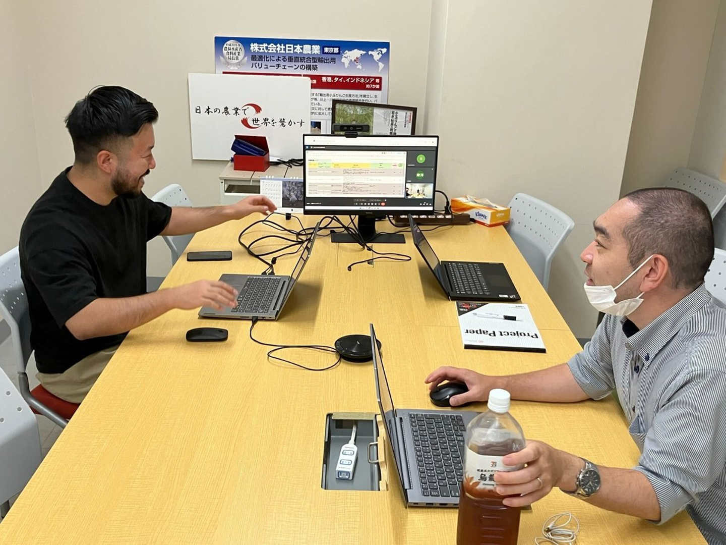 本社・青森・静岡の各拠点間のビジネスオペレーションメンバーと週次でタスクの確認をしています。向こう1週間でなにをするか、発生したトラブルはないか、など細かく認識合わせをしていきます。
