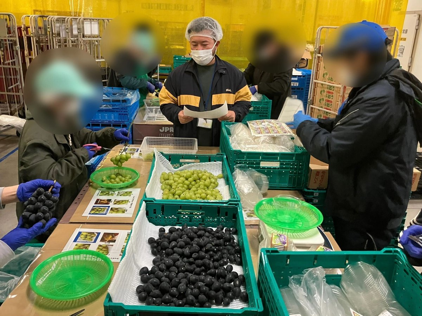 この時はシャインマスカットとナガノパープルという品種の粒入りパックを作成していました。