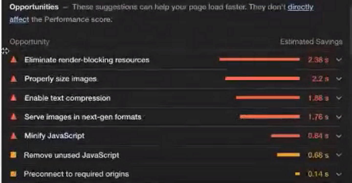 Lighthouseでは、パフォーマンスのボトルネックとなっている部分を、負荷の大きい順にリストアップしてくれます。使い方のポイントとして、まず問題の箇所がWebサイトの中でどのような役割を果たしているのかを調べた後に、最適化の手段を検討するのが効率的とのことです。