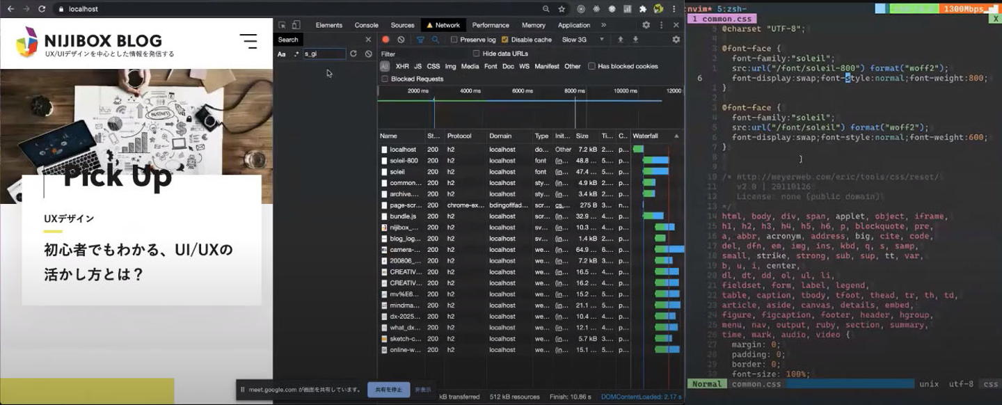HTML、CSS、JavaScript といったソースコード郡と利用している assets 郡の細部まで見ないとなかなか気づかないところまで施策を行っており、参加者からも感嘆の声が上がりました。実際の作業画面を見ながらの説明だったため、メンバーの納得感も高かったのではないでしょうか。