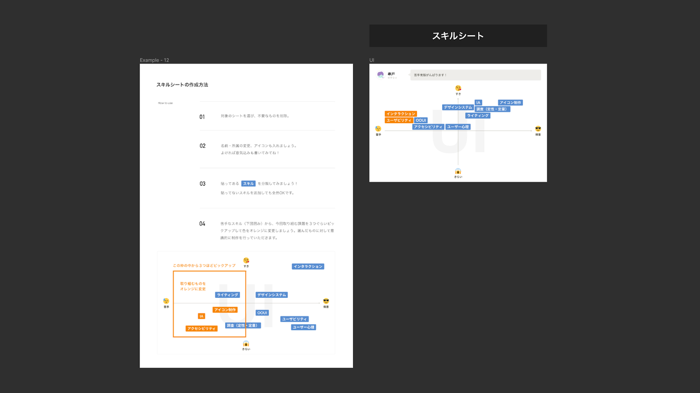 - 「デザインシステム」や「ユーザー心理」のスキルが少し身についた。