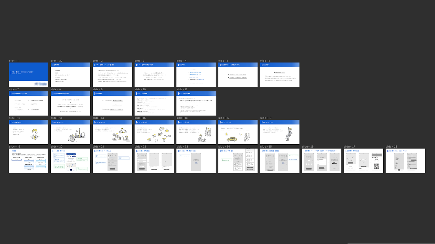 - レビュアーや最終プレゼンテーションを聴く側の立場に立ってのレビュー依頼や、資料作成をすることができた。