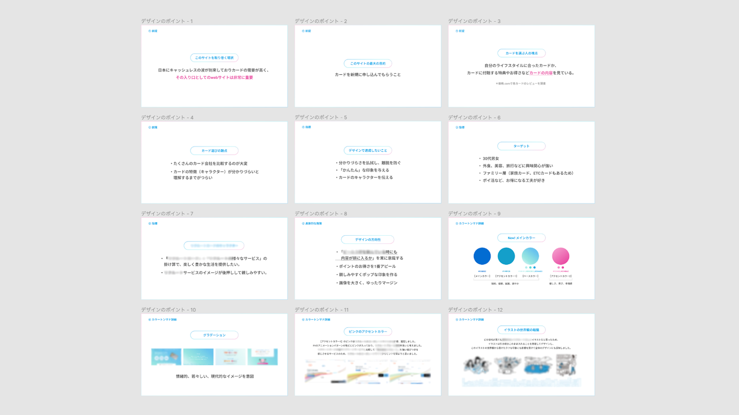 あるクレジットカードサイトの現状の問題を整理し、リニューアルをするという課題です。