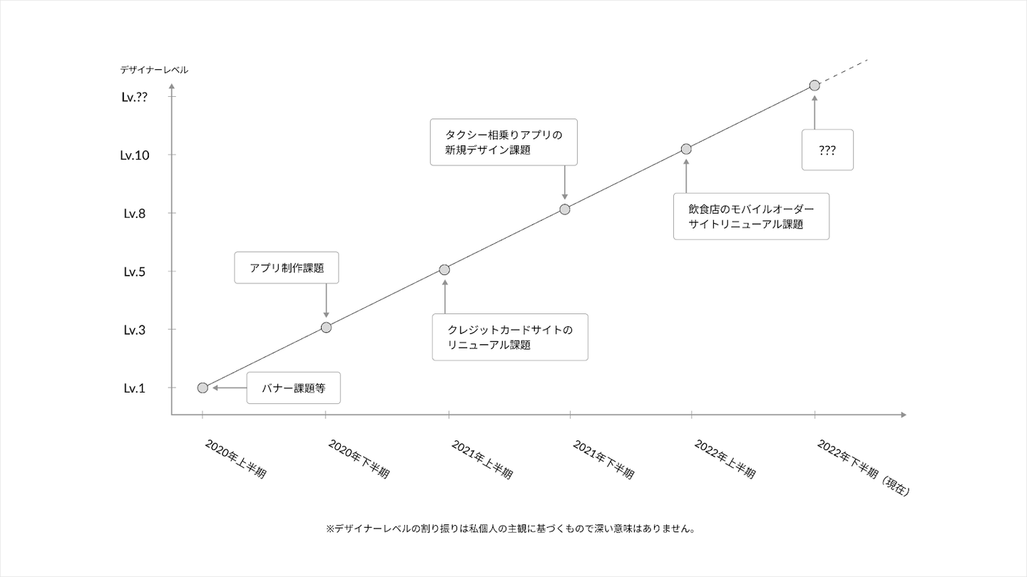 主観ではありますが、課題を経るごとに成長を実感していたため、デザイナーレベル軸も表記してみました。
