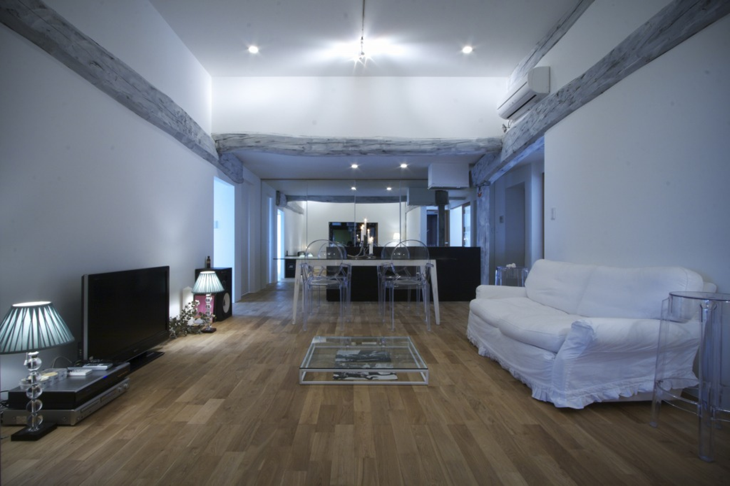 当時はまだ『リノベーション』という言葉もなかった時代。できあがったマイホームは、現在のトレンドとも言える無垢のフローリングと、天井と壁にペンキを塗っただけのスケルトン空間でした。そこをオープンハウスとして営業活動をすることで、事業をスタートさせ、今につながっているそうです。