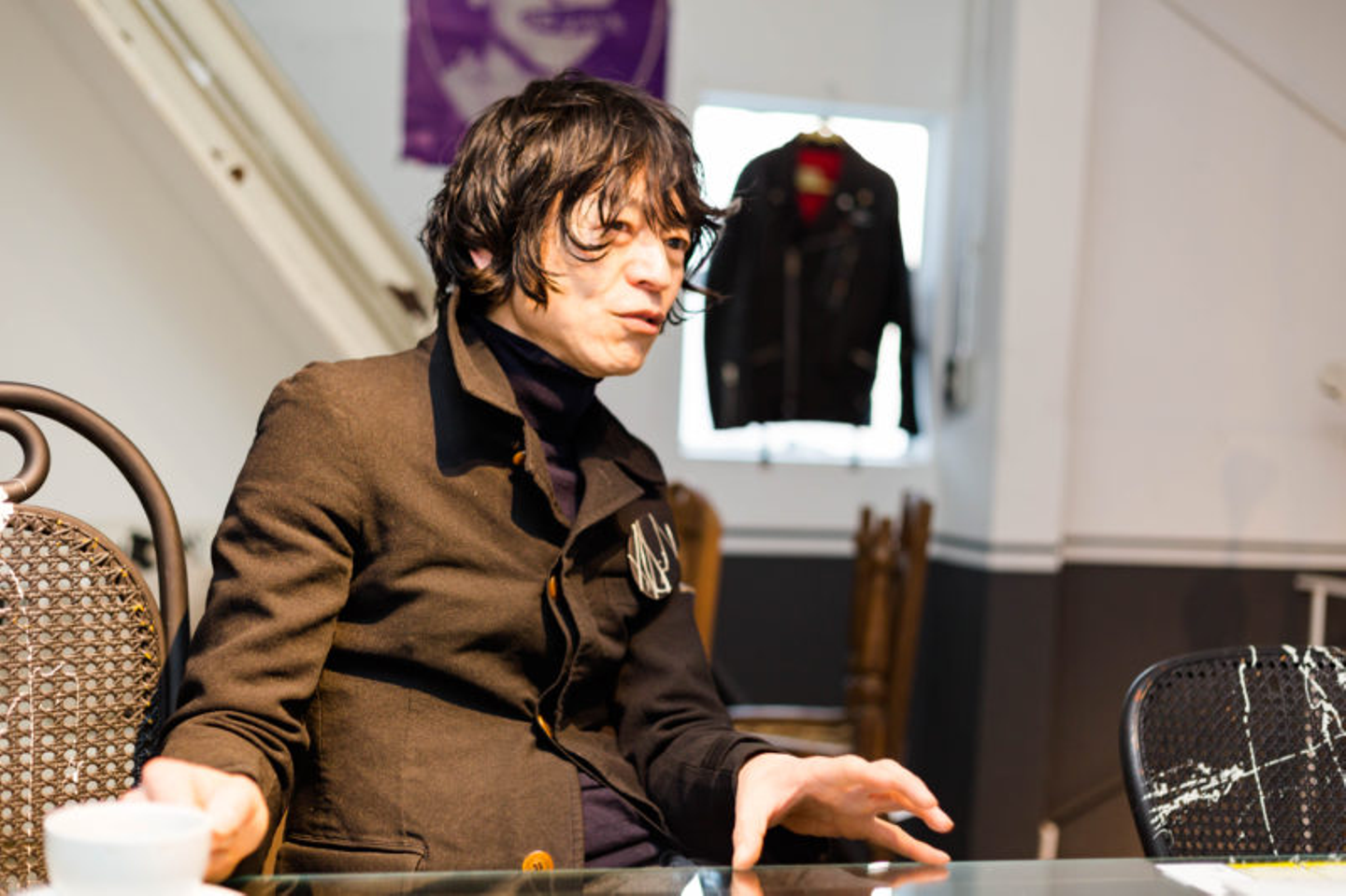 音楽との出会いを聞くと、社内の壁に貼られた1枚のポスターを指で差しながら、説明をしてくれました。