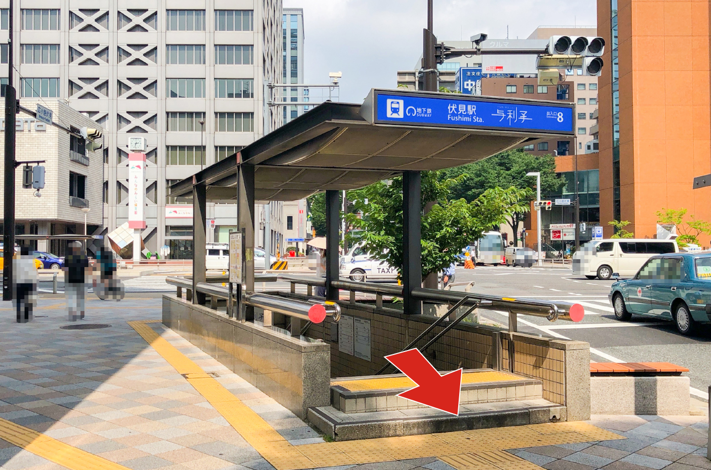 階段を上がり、8番出口から地上へ出ます!