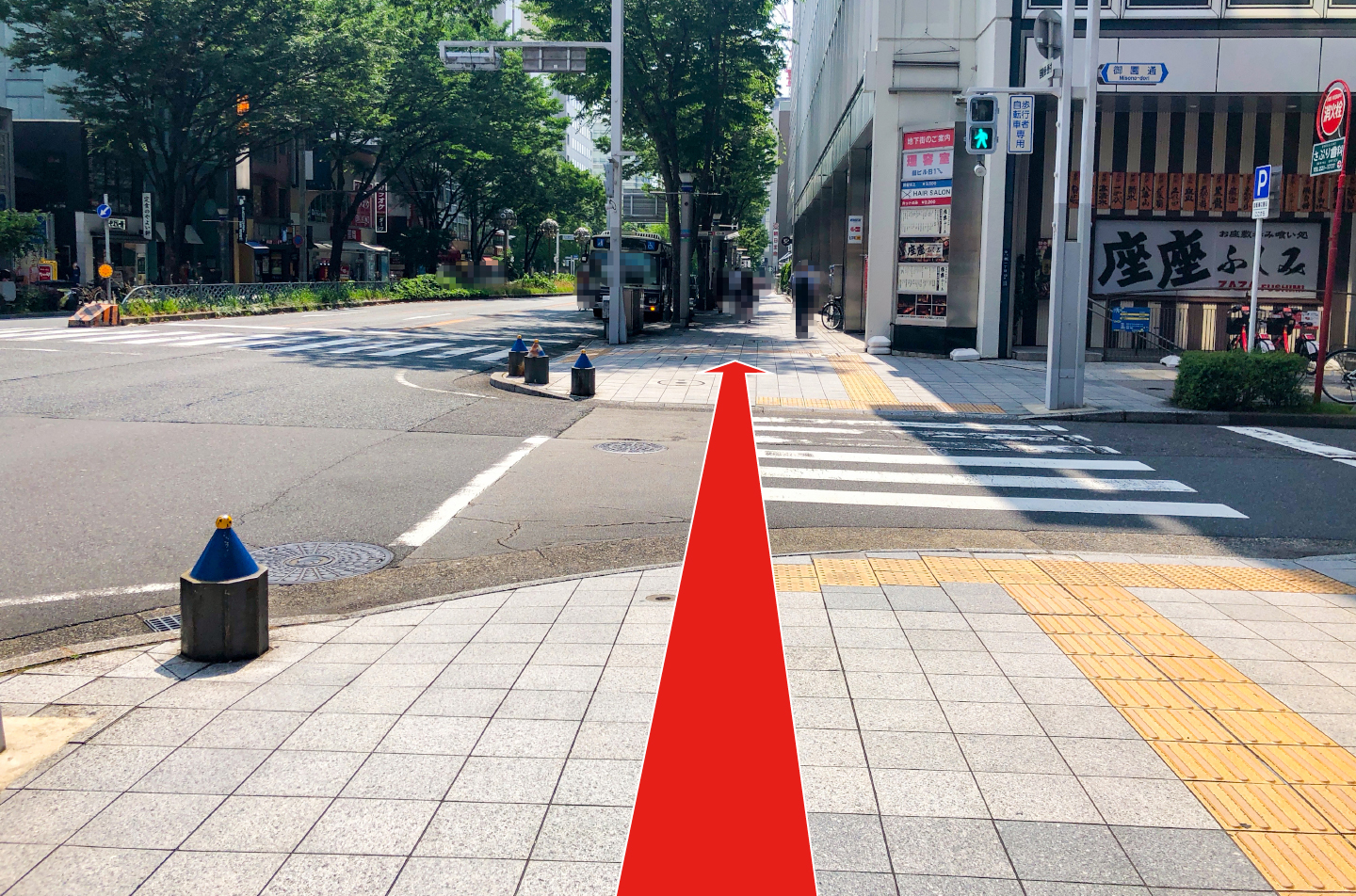 横断歩道を渡り終えて、数メートル。